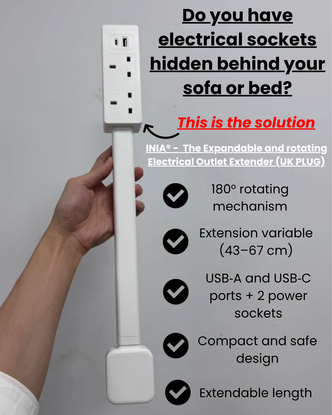 INIA® - Expandable and rotating Electrical Outlet Extender (UK PLUG)